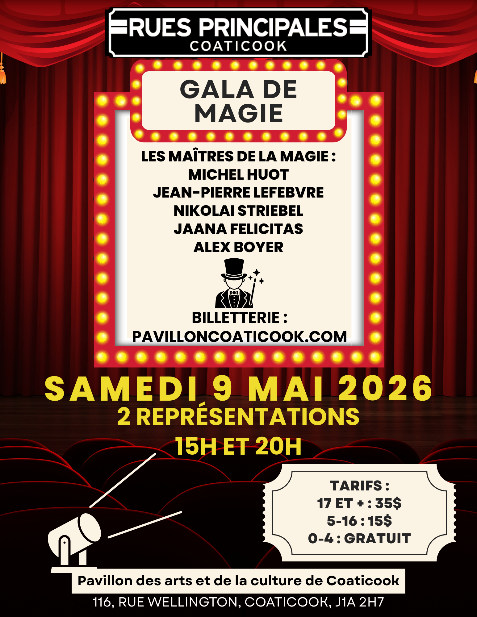 Préparez-vous à vivre une soirée spectaculaire avec des artistes d’exception! Sur scène : Michel Huot, Alex Boyer, Jean-Pierre Lefebvre, ainsi que nos invités internationaux Jaana Felicitas et Nikola Striebel, directement d’Allemagne – une occasion unique de voir ces talents d’ici et d’ailleurs réunis au même endroit! Mystère, illusion et émerveillement vous attendent… Ne manquez pas […]